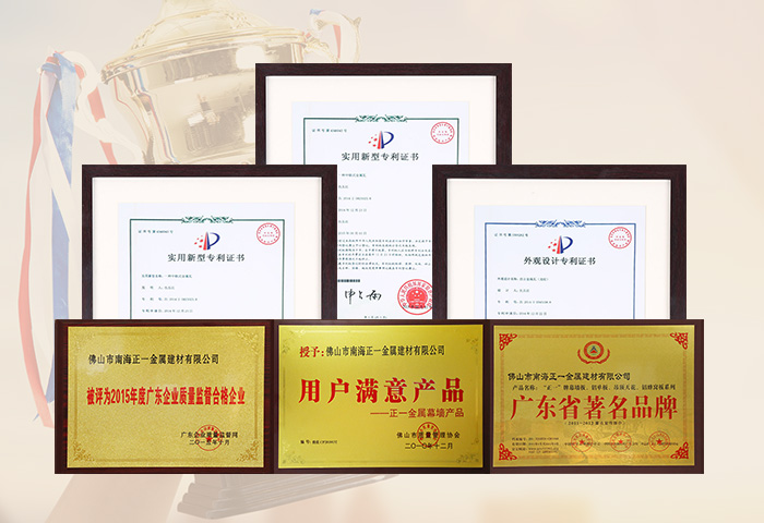 通過ISO9001認證,國家建筑材料測試中心和中國有色金屬華南產(chǎn)品質(zhì)量監(jiān)督檢驗中心合格檢測,符合美國建筑制造商協(xié)會AAMA2605-98涂層標準,被國家建設部認定為建筑鋁合金外墻板、鋁合金天花板定點生產(chǎn)企業(yè)。